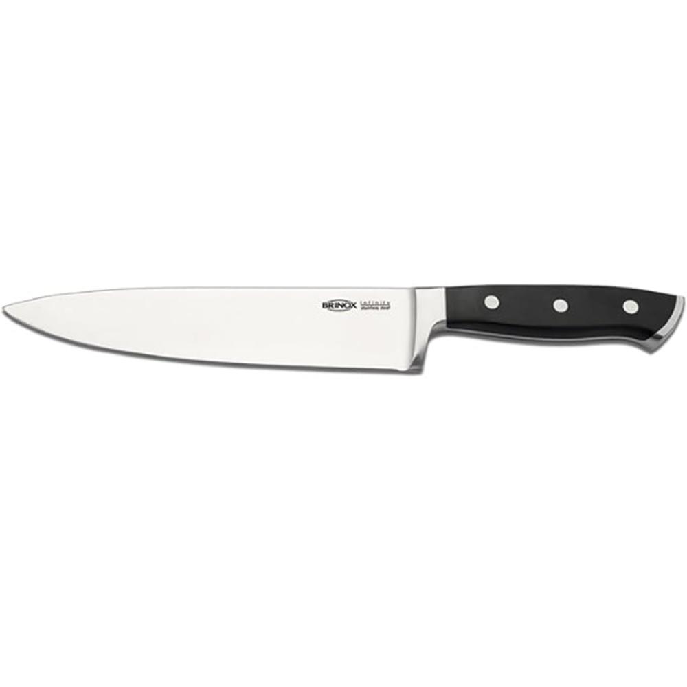Nesta linha, a faca Chef possui 8 polegadas e medidas: 33,5 x 4,6 x 1,9 cm.